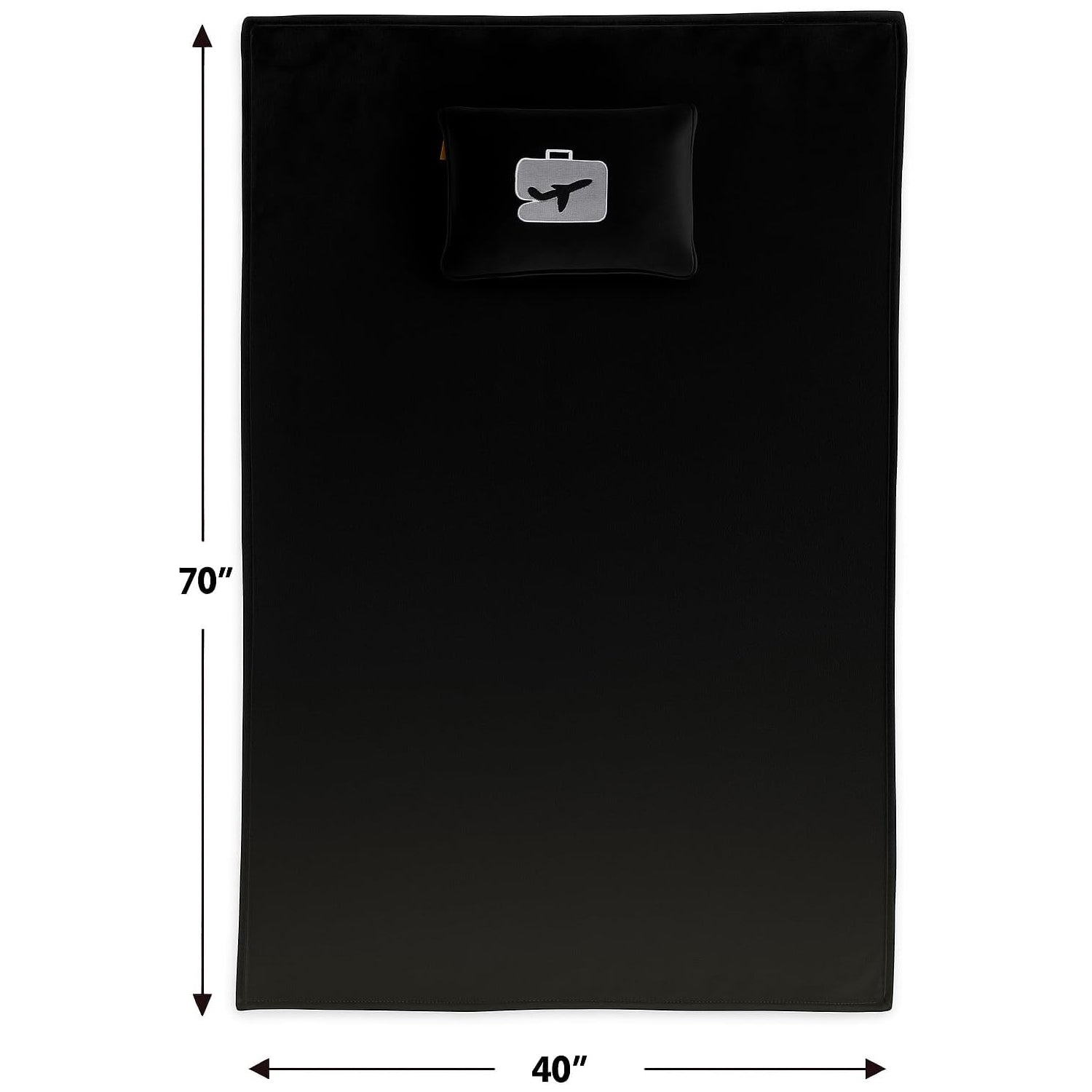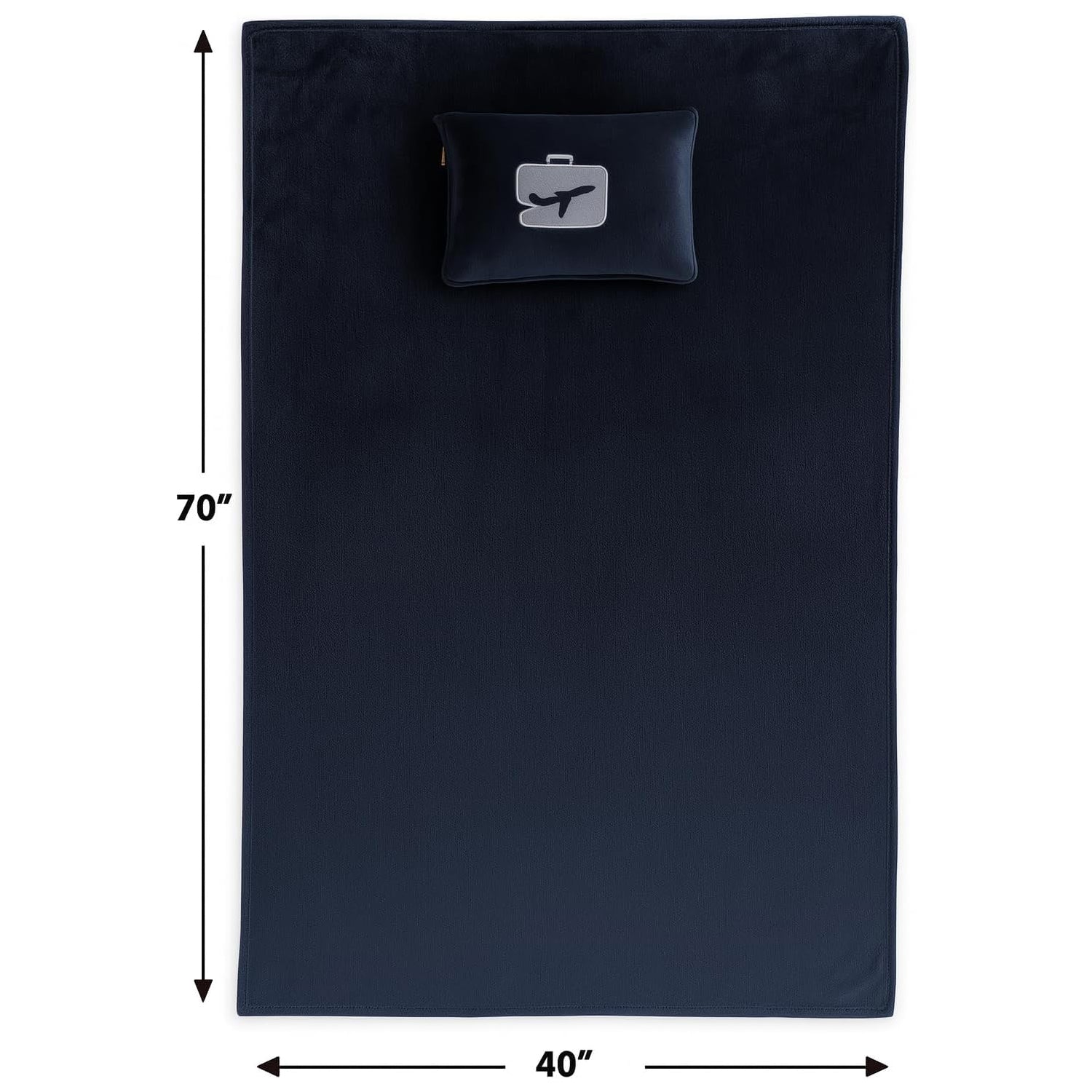 Crafted from 100% premium micro plush polyester, the fabric provides a smooth, luxurious touch while remaining lightweight and breathable. The 40" x 70" blanket offers generous coverage without bulk, folding neatly into a built-in carrying pouch with a convenient handle for easy portability.