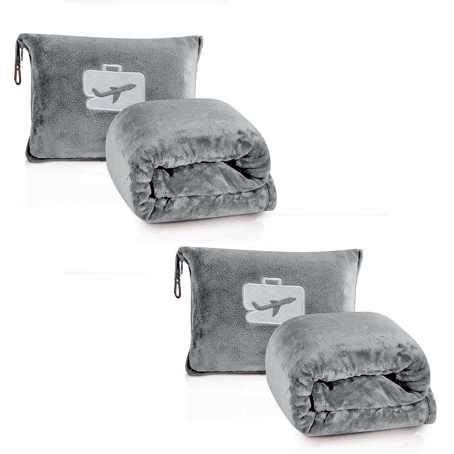 2-in-1 Functional Design: Easily transforms from a cozy blanket into a plush travel pillow with an attached carrying pouch.