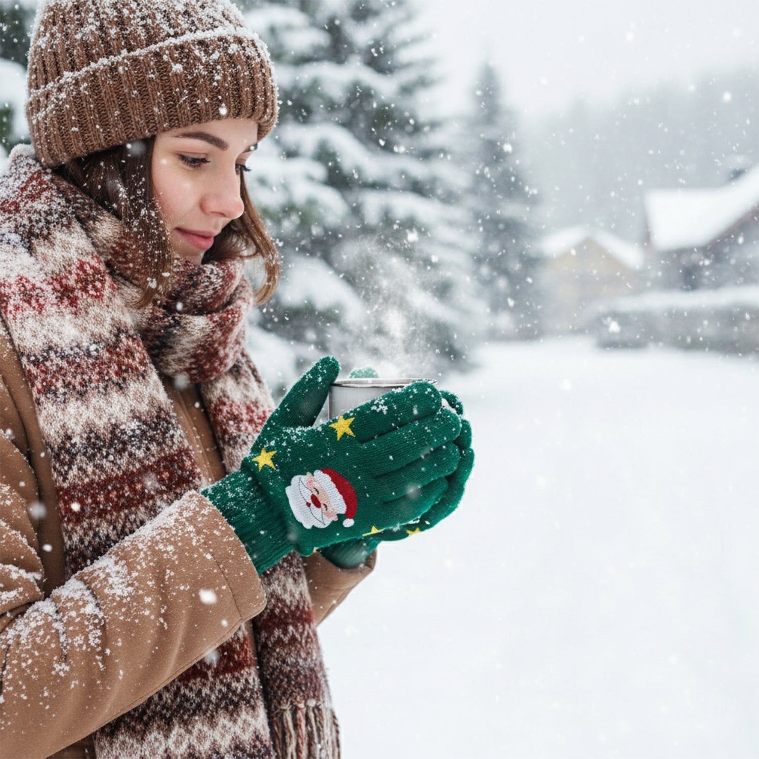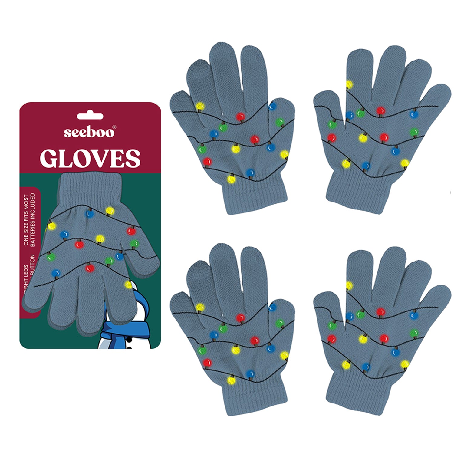 Add a festive touch to your winter look with these LED Light Up Knit Gloves. Crafted from soft, stretchy knit fabric, they provide a comfortable and cozy fit for most adult hand sizes. The gloves feature 6 bright LED lights that illuminate with the push of a button, making them perfect for evening walks, parades, and holiday events. Lightweight yet warm and are ideal for both indoor and outdoor celebrations. Each pair comes with batteries included for immediate use. Hand wash only. A great holiday gift for adults who enjoy festive accessories with practical comfort.