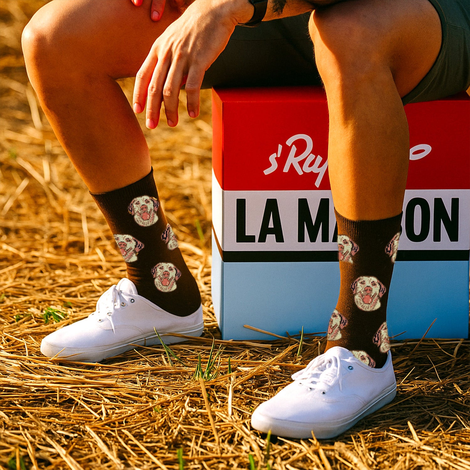 These crew socks bring comfort, quality, and timeless style together with a touch of dog-lover charm. Crafted from a soft cotton blend, they offer a comfortable fit suitable for daily wear at home, work, or while out and about. The woven dog patterns add a playful yet tasteful design element, making them a versatile choice for both men and women. Designed in a classic crew length for all-day coverage, these socks are perfect for anyone who appreciates everyday essentials with a personal touch. They also make a thoughtful and practical gift for pet lovers.