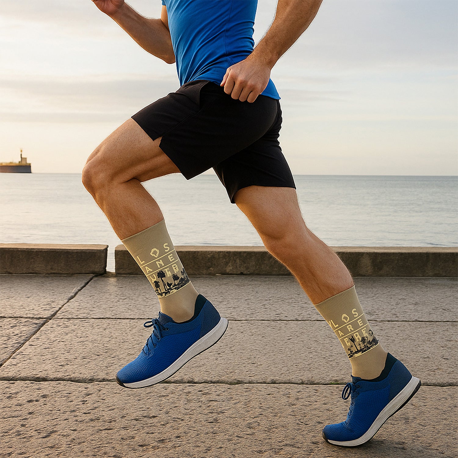 Step into style with these unisex city-themed cotton socks, crafted for comfort, durability, and everyday wear. Made from a premium fabric blend (65% cotton, 32% nylon, 3% spandex), these socks are soft, breathable, and lightweight, keeping feet cool and comfortable all day. The secure elastic edging helps the socks stay in place without sliding down. Designed in a variety of city-inspired patterns, they add a unique, stylish accent to any outfit—whether paired with dress shoes, casual sneakers, or loungewear. Perfect for daily use, travel, or as a thoughtful gift for anyone who appreciates city-inspired fashion.