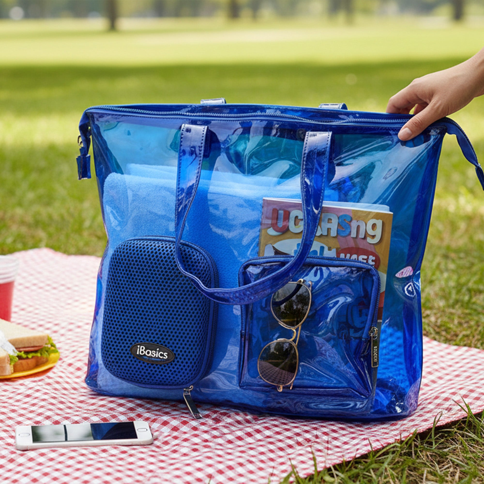 Make every outing more enjoyable with the iBasics Waterproof Beach Tote Bag with Built-In Speaker. This large, practical tote provides generous storage for beach days, pool visits, gym sessions, and weekend travel. The waterproof material helps keep your essentials protected, while the built-in stereo speaker lets you listen to your favorite music or podcasts without carrying extra equipment.
