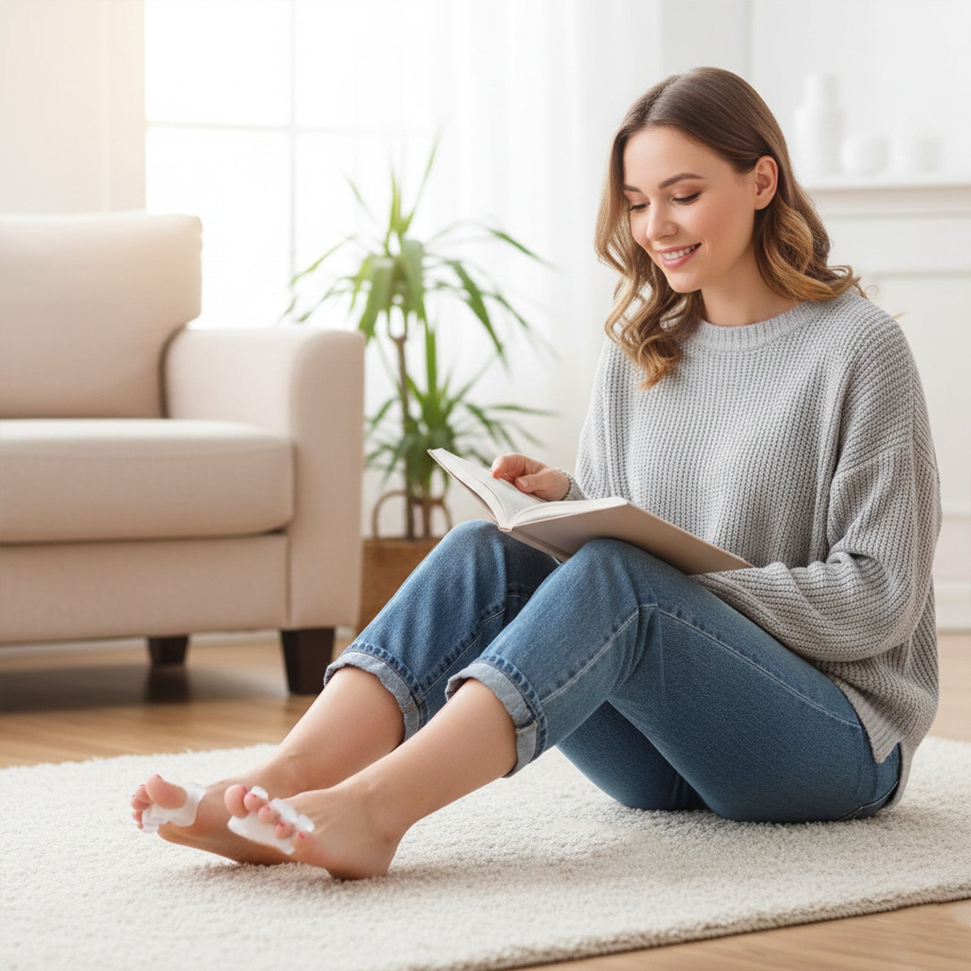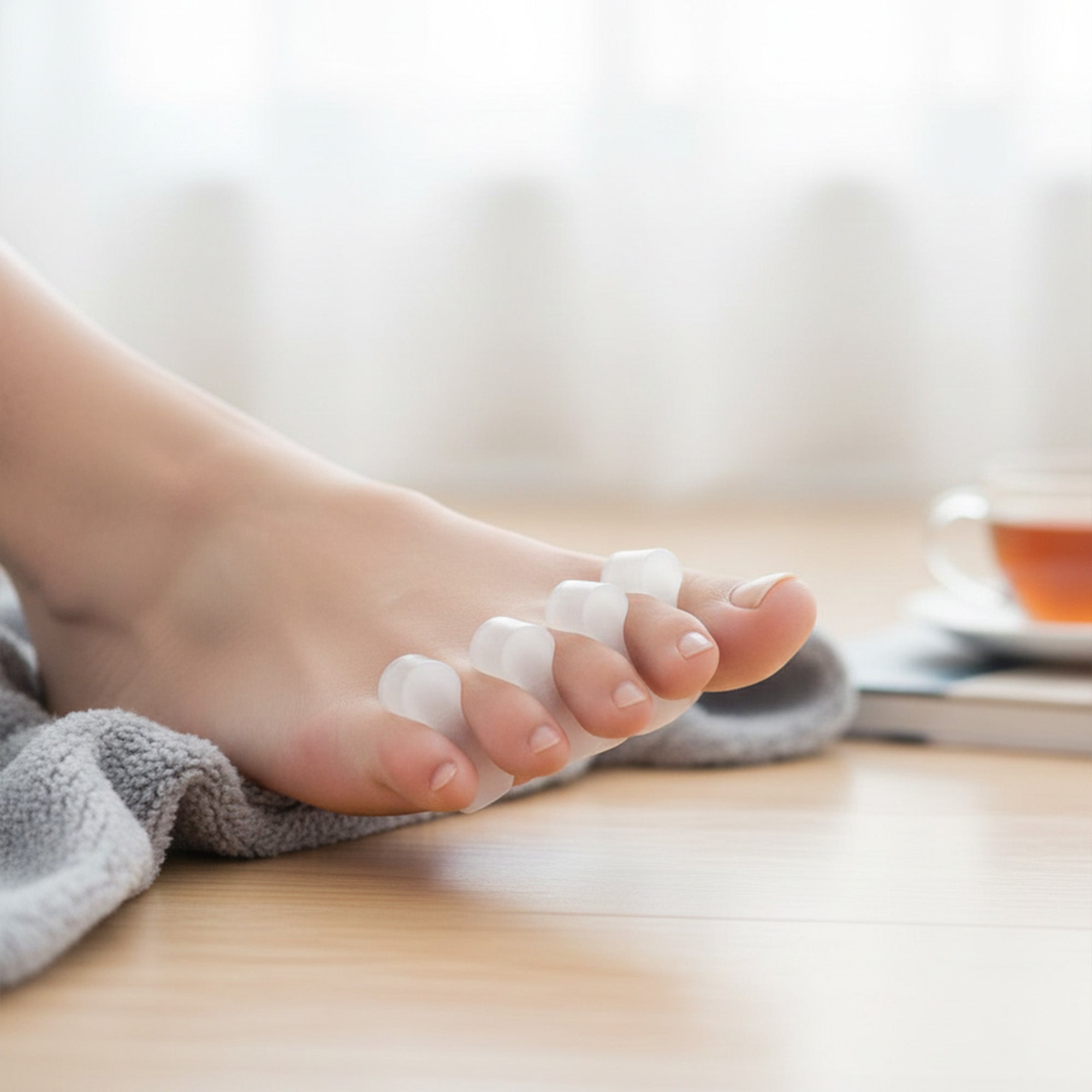 Gently increases spacing between toes to encourage natural alignment and improved comfort while resting or walking.