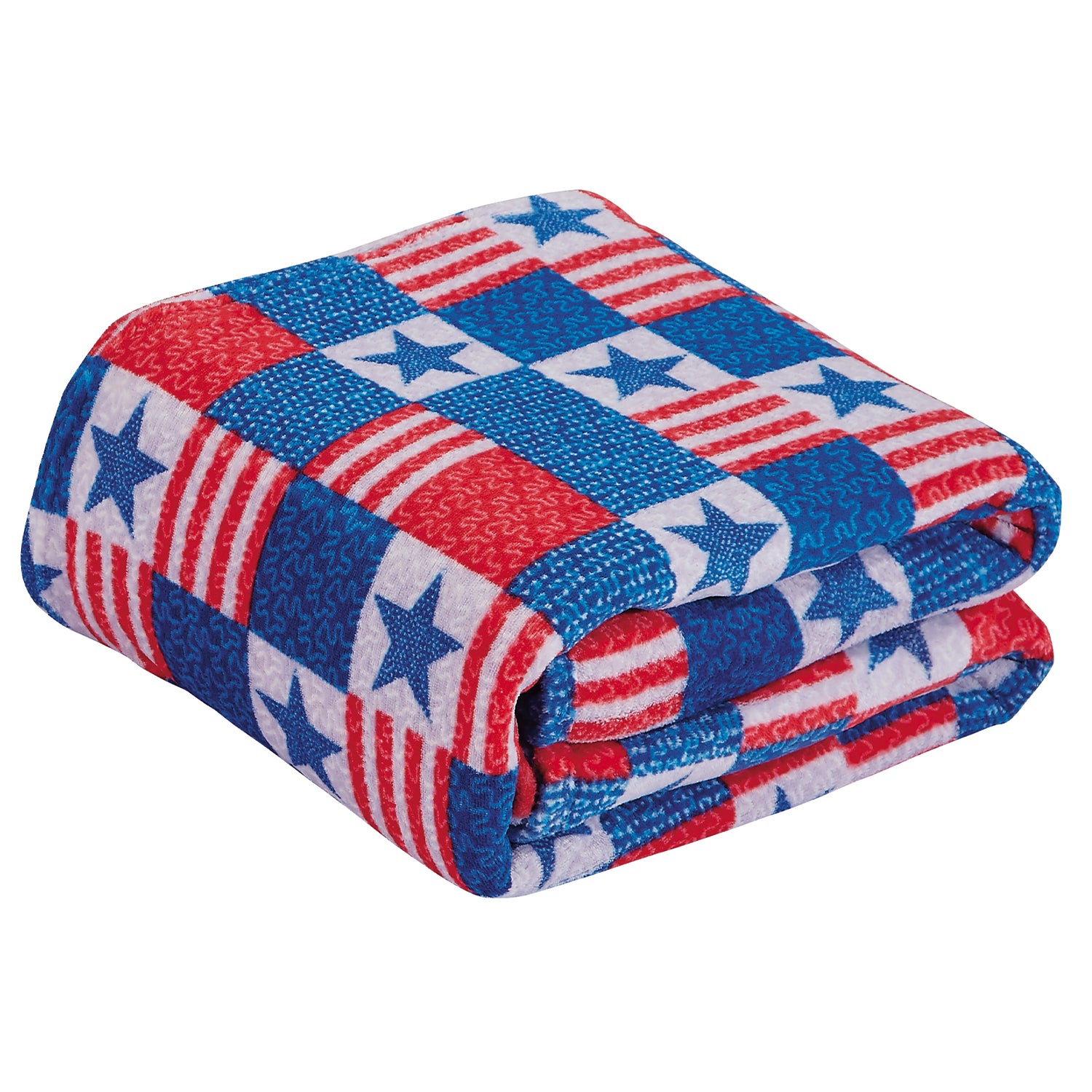 | Ultra Soft Patriotic Patchwork Micro Plush Throw Blanket – 50" x 60" Cozy Lightweight Fleece Blanket for Couch, Bed & Travel – Warm, Durable, Machine Washable Americana Gift | PAT-PATCHWORK-THR | 099651046154 | 0.0 oz |