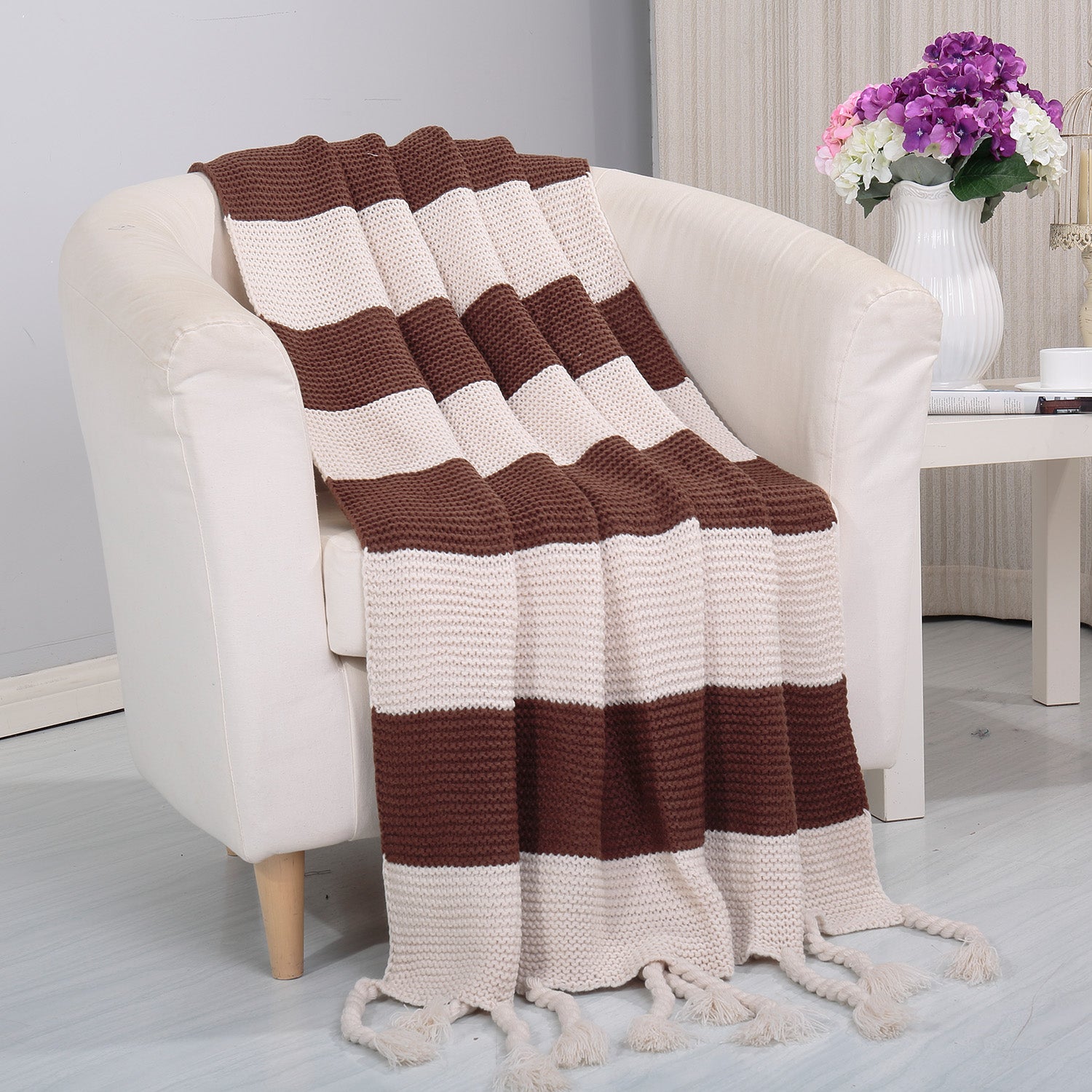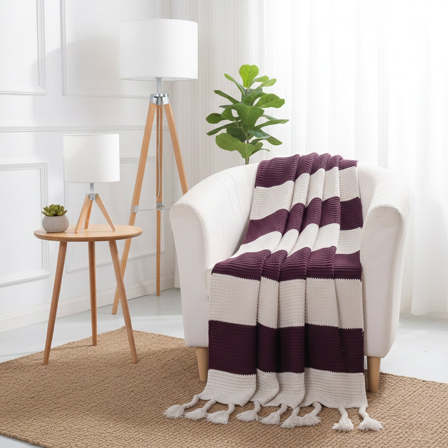 Timeless plaid pattern with decorative fringe edges adds traditional charm to living rooms, bedrooms, and outdoor settings.